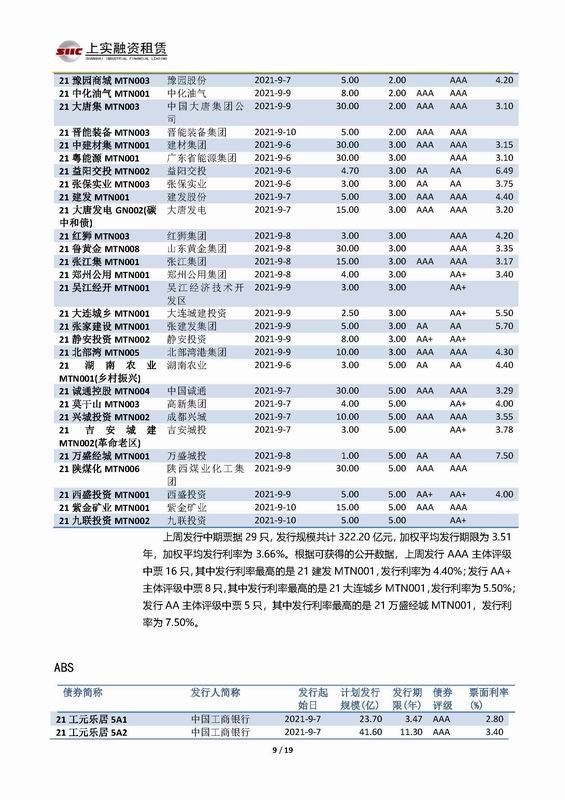 | 當(dāng)前位置:新聞中心 > 上實(shí)-融資工具周報(bào)2021.9.6-2021.9.10 | |||||